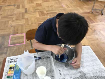 2年生はスライムの感触に初めは驚きながら,少しずつ感触を楽しむことができました。