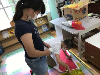 会場チームが,オリンピックには欠かすことのできない,聖火のトーチと聖火台をつくってくれました。すべてが手づくりの,気持ちがこもった作品になりました。この聖火のトーチと聖火台を使用して,聖火リレーも行われます!
