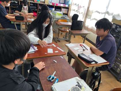 長方形の縦と横が同じ比率になるようにカードを作り,グループでゲームをしました。