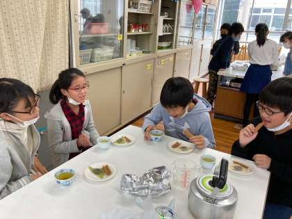 とってもおいしいお茶を入れられました。いつも当たり前に飲んでいたお茶のおいしさを改めて知る良い機会になったのではないでしょうか。飲み終わった後は,みんな少しほっこりした様子でした。