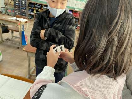 今回は,友達と英語で会話しながら,自分の持っているアルファベットカードを交換しました。