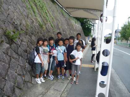 午前6時50分集合で,6年生(10名)は,西京極アクアリーナに向けて出発しました。西京極へは,京都バス・地下鉄・阪急電車を乗り継いで到着します。子どもたちのがんばりに期待しています。