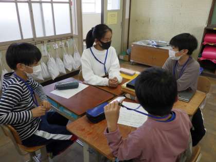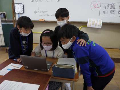 みんなでは集まれないからこそ各クラスに集結した5・6年グループでアイデアを出し合っています。最後には出たアイデアをZoomで共有しました!