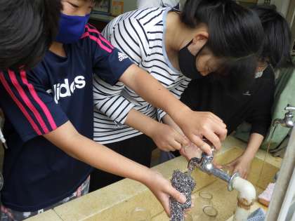 実験のあとは集気びんや燃焼さじを実験しやすいように片付けました。自分たちが使うもの、使った後のものをより美しく使うことのできる6年生です。