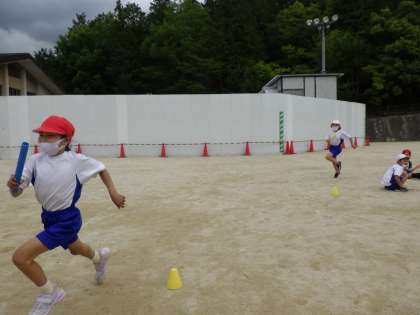 少しでもチームで速く走るために,バトンをリードしながらもらおうとする姿も見られます。これからの成長も楽しみです。
