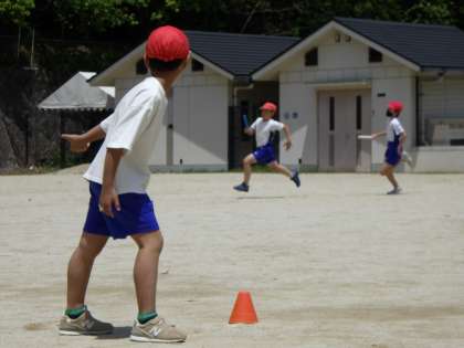 体育ではリレーの学習をしています。