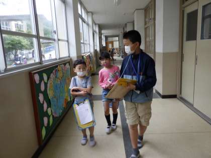 20日(木)に1年生と6年生の学校探検がありました。1年生の行ってみたい場所や1年生がよりくわしく知りたい場所などを事前にインタビューして,40分という限られた時間の中で,いかに学校探検を充実したものにできるか準備を進めてきました。ある人は探検する順番を工夫したり,ある人は説明の仕方にクイズを取り入れるなどの工夫をしたりする姿が見られました。