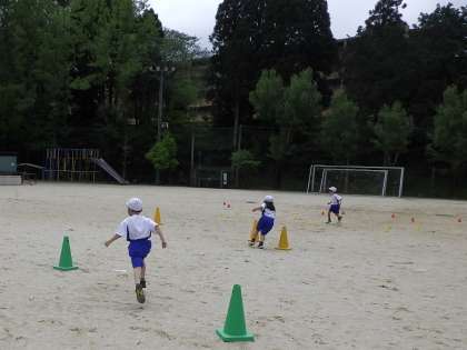 体育科のかけっこで色々な障害物のあるコースで走り,体を上手に動かしてリズムよく走れるようになってきました。