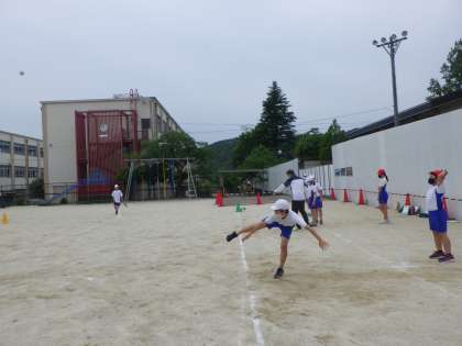 ソフトボール投げのときには,練習で「少しステップを踏んでやるといいよ!」と声を掛け合いながら自分の記録に挑戦しました。