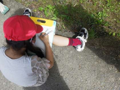 坂原には,普段見られないような生き物がたくさんいました。「あ,茶色の羽で体が青色のトンボがいる!」「紫色のふわふわの花を見つけたよ。」と子どもたちはとても楽しそうに探していました。