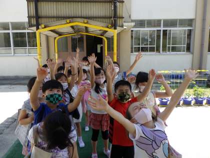 学校の渡り廊下に,ミストが出る機会が設置されました。