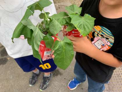 支柱も立てて,子どもたちから「もっと大きくなってほしいな」「これからもみずをあげよう」と,あさがおのことを大切にしている姿が見られました。