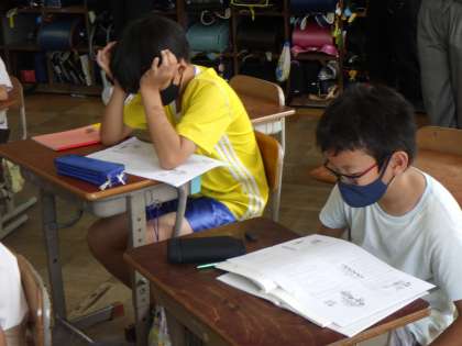 「白いぼうし」の学習が始まりました。今回,「車の色は空の色シリーズ」というシリーズ本を並行して読書学習を進めていきます。このお話には,たくさんの不思議な要素が詰まっており,子どもたちもわくわくしながら読書を楽しめます。不思議を解決するために,みんなで話し合いながらお話を楽しみたいと思います。