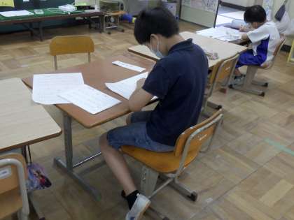 今日は硬筆に取り組みました。それぞれが思い思いの文を書きました。とても集中して3,4枚書き,よい作品ができました。
