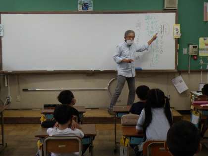国語の学習で図書からの「引用」の仕方について図書館司書の新井先生に教えてもらいました。「博士やノーベル賞をとった人たちも正しく引用をしてレポートをまとめているんだよ。」と言ってもらって,「へーそうなのー!?」と子どもたちは目を丸くして聞いていました。