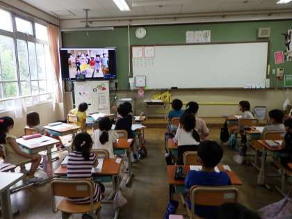 サプライズで行われた「いわうぇる」に,1年生は驚き,とても喜んでいました。