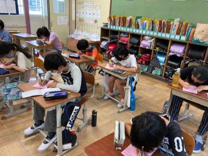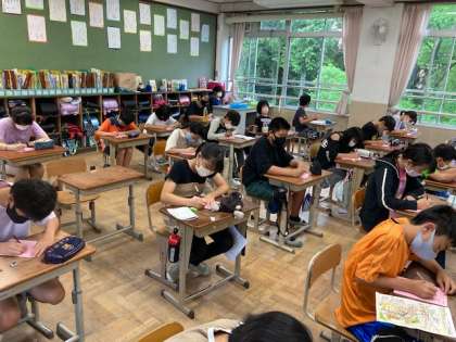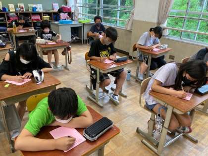 7月7日(水)の5校時に授業参観を行い,その後学級懇談会を行いました。今回は総合的な学習で取り組んできた『平和学習』についての発表を行い,それぞれ『平和とは?』という問いについて自分なりの思いや考えをもって修学旅行に向かう準備が整ったようです。この学びを胸に,広島の地でさらなる深い学びを得てほしいと思います。参観の翌日には,発表して改めて見えてきた平和についての思いを文章に書きまとめました。