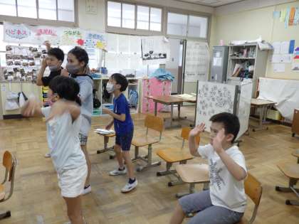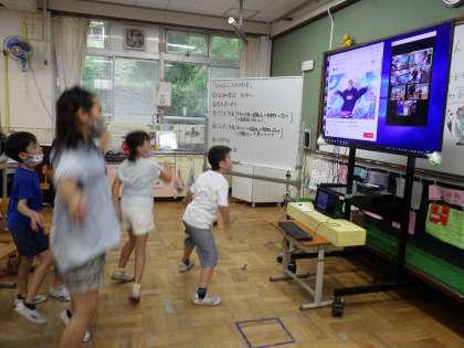 今日は他の学校の育成学級のお友達とZoomを通して交流しました。クイズ大会とじゃんけん大会をしてパプリカとEX体操を踊りました。みんなとても楽しそうしていました。今回は岩倉北小学校が司会を担当し,上手に司会もできました。