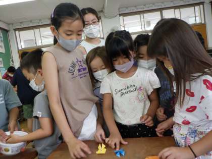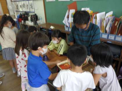 5年生にやさしく教えてもらい,とてもうれしそうでした。