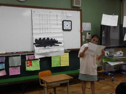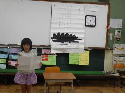 今日は「は」「を」「へ」を使おうの学習しました。まず,かえるの文を読んで「は」「を」「へ」には違う使われ方があることに気づくために音読しました。