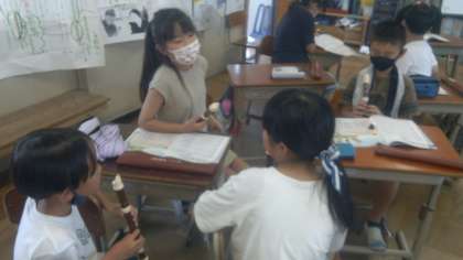 今日は「グループのみんなで協力して練習」というめあてをもとに皆で音楽のリコーダーを頑張りました。リズムだけでなく,どうすれば曲の良さが出るのかも話し合うことができました。