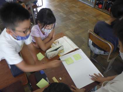 国語科の「新聞を作ろう」の学習では,クラスの良さについての新聞をかきました。わりつけをみんなで話し合いながら,構成も決めました。