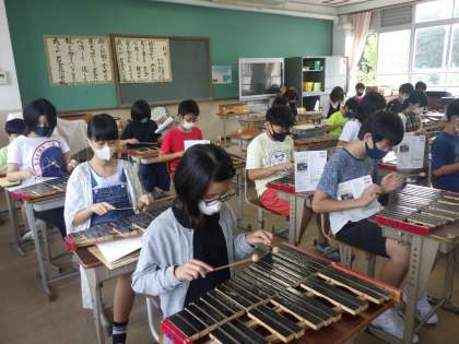 リコーダーの合奏が難しい今、打楽器を使って音を奏でています。タイミングを合わせて息を合わせて音を合わせてみると打楽器隊のようで、演奏が楽しくなりました。 「のばす音が難しいなぁ。」「グロッケンは音がきれいにのびた!」と新しい挑戦に気付きも生まれていました。