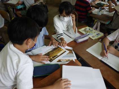 社会科の学習で,資料を見て分かったことを話し合っています。友達と話し合うことで,さらに新しい考えに広がっていくことに楽しさを感じているようです。次の時間,話し合ったことを全体で共有することが楽しみです。