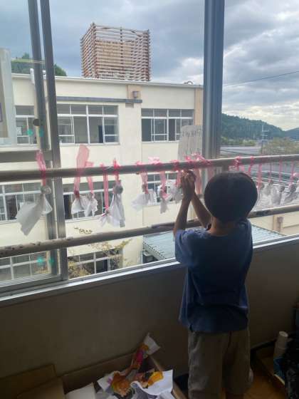 子どもたちは,運動会当日の天気を心配しているようです。クラスでは,てるてる坊主を飾りながら名がっています。