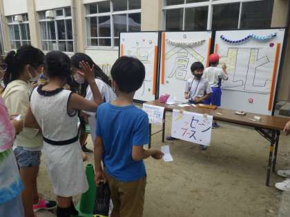 自分たちの発表以外の時間には,ブースのコーナーも楽しみました。自分たちで楽しむだけでなく,お店屋さんになって,下の学年の子たちにも優しく教えてあげている姿を見て心温まりました。たくさんこれまでに準備をしてくれた5・6年生の姿を見て,4年生も引っ張っていきたいなという気持ちが高まっているようです。来年が楽しみですね。