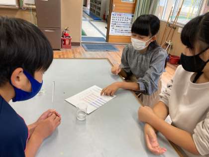 「つんとするにおいがしたアンモニア水はアルカリ性か。」とそれぞれの水溶液の性質に詳しくなってきました。