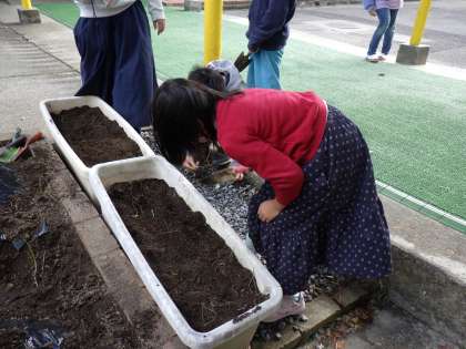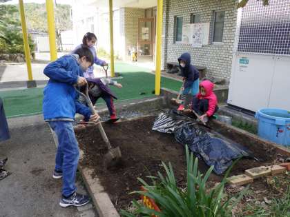2週間前から,土を耕し,苦土石灰,肥料,鶏糞,たい肥を入れ畑を整えました。種も水に入れて置き,準備万端!法蓮草と人参とニンニクを植えました。無事に収穫できるといいですね。