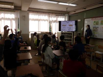 さらに小学校高学年では1日700〜750mgの摂取が必要で、中学生では850mgを超える量が必要だと知り、みんなびっくりです!普段の給食から振り返り、カルシウムの多い食材を中心に、これからの骨の成長を支えるためにカルシウムをとる工夫をそれぞれ考えました。中学生に向けて大きく成長しよう!