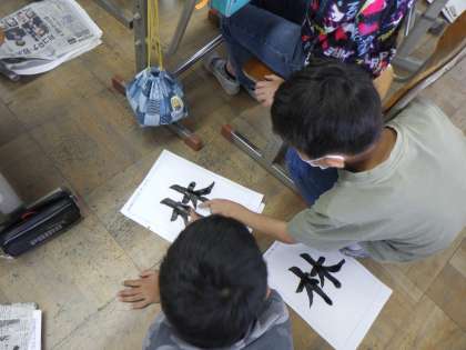 書写の学習では,自分が書く最高の字を目指して練習を重ねています。それぞれめあてをもって取り組むことで,日に日にいい字を更新していっています。友達とアドバイスしあったり,見本と見比べたり,じっくり自分の書く字に向き合うことができています。
