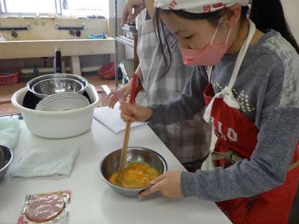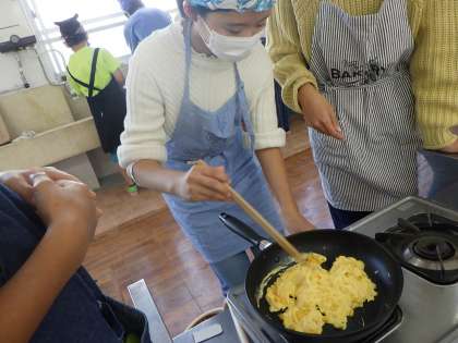 ふわふわとろとろスクランブルエッグを目指して,調理実習をしました。