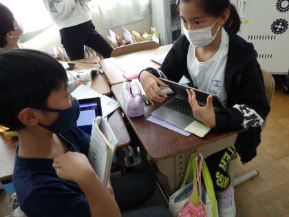 5年生の外国語では,週末のウィークエンドGIGAで持ち帰り,調べてきた「行ってみたい国」についてクイズにして交流しました。