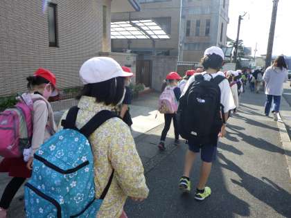 1年生と2年生のペアグループでどんどん歩いていきました。長い距離でしたが,しっかりとした足取りで上手に並んで歩いていきました。