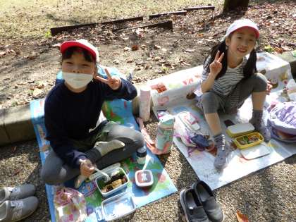 たくさん遊んだ後は,おいしいお弁当の時間です。