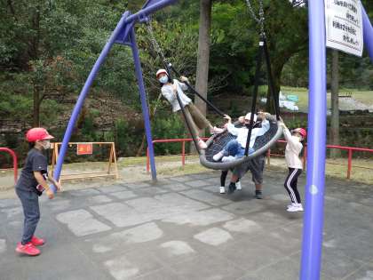 子どもの楽園には,4人まで乗れる大きなブランコがありました!