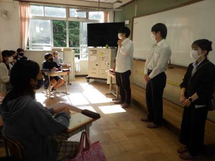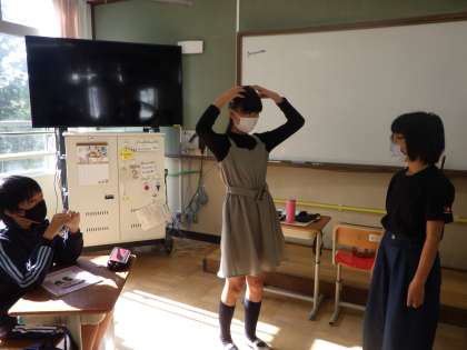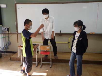 道徳「ロレンゾの友達」では、劇団衛星さんと一緒に学習しました!まず,友達に動作のみで伝えてもらったことを次の人へ伝えるジェスチャーゲームをしました。動きや表情だけで伝えることは難しいですが、それぞれの伝え方は違うからこそのおもしろさ・楽しさを感じながら過ごしました。