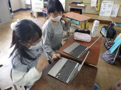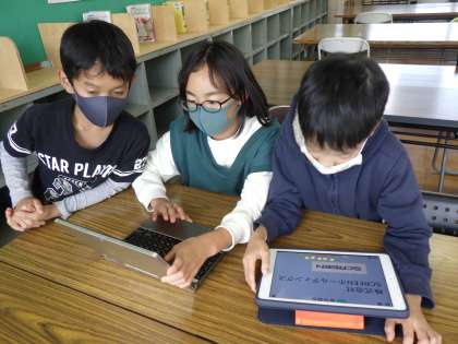 今日は,総合科の時間に調べていた京都の会社のものづくり魂について,下京渉成小学校の4年生とオンラインで交流をしました。