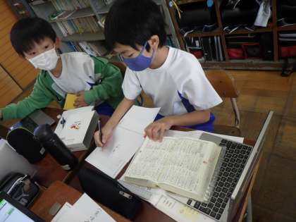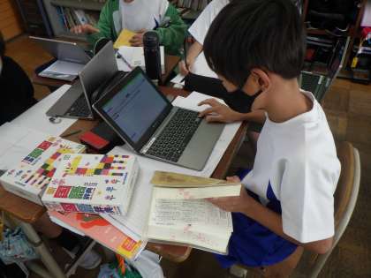 国語科では,慣用句を習いました。自分たちでも慣用句を調べてみました。知らない言葉を知る楽しさを感じているようです。