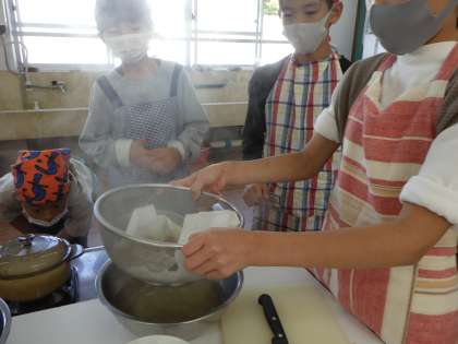 煮干しの下処理の仕方,浸す時間,煮る時間・・・気を付けなければならないことがいっぱい。グループで協力しないとできないことばかりでした。