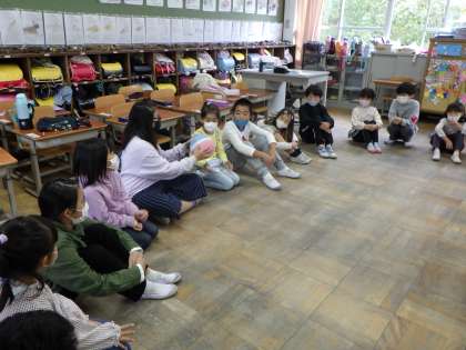 初めは,お話しタイムで,たくさん5年生と話しました。遊ぶことはあっても話すことはこれまで少なかったので,1年生もうれしそうでした。