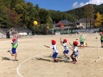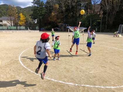 体育科のパスゲームでは,シュートゲームを楽しんでいます。学習の3時間目にもなると,子どもたちはたくさんの工夫を見つけ始めました。