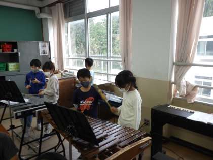 音楽では「茶色のこびん」を合奏の練習をしています。自分の挑戦したい楽器で練習を友達とペアで練習をすすめることで始めは難しかったですが,少しずつ分かってきたようです。ひとりひとりで練習をしていると,自分のパートだけに集中してしまいますが,みんなと合わせるとより合奏の楽しさを感じることが出来たようです。
