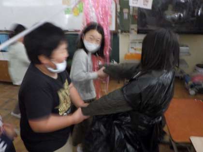 3組では,少し遅れたハロウィンパーティーが今週行われました。1・2年生を休み時間に招待し,お化け屋敷や射的コーナーでお出迎えしました。とっても楽しんでくれたことが,3組の子どもたちはとても嬉しかったようです。
