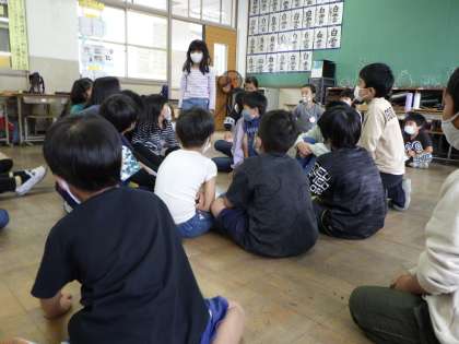 みんなで爆弾ゲームをしました。自己紹介をするという罰ゲームもありましたが,1年生もがんばってくれて,楽しくゲームができました。