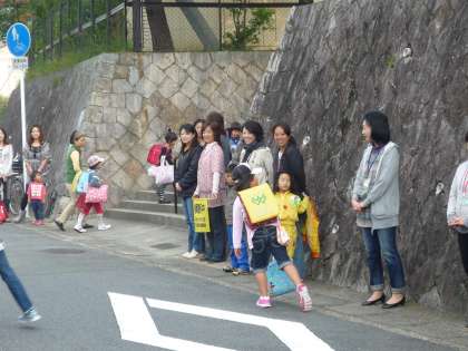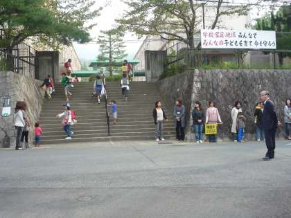 多くのPTAのお母さんに出迎えられ,子どもたちが元気に登校しました。今日から,後期が始まります。PTAでは,毎月2〜3回,「朝の声かけ運動」を実施されています。お母さんの「お早うございます」という明るい笑顔を受け,子どもたちも元気に挨拶する素晴らしさを少しずつ感じとっているようです。