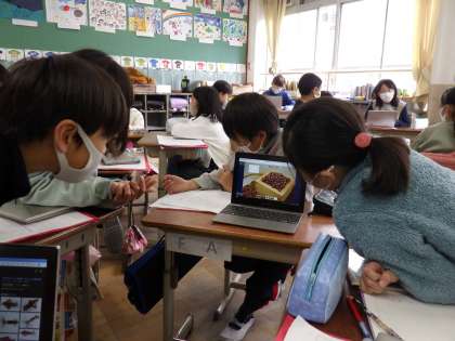 説明文「すがたをかえる大豆」で読んで学んだ説明の工夫を使って,自分が選んだ食べ物のひみつを説明する紙芝居をつくりました。友達の紙芝居を見せてもらうことを通して,普段何気なく食べている物がいろいろな食べ物に変化していることがたくさんわかりました。